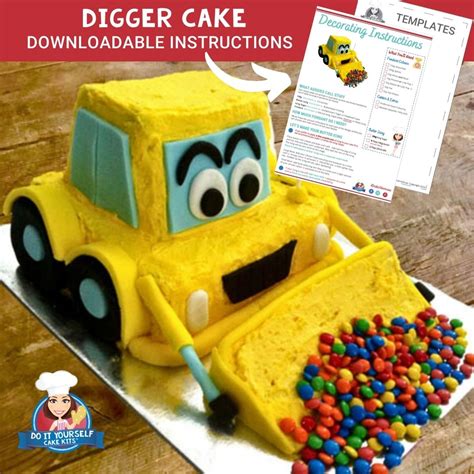 Instructions for making an easy construction digger birthday cake: Preheat the oven to 180c/350f/gas 4. This pdf contains 10 pages and consists of actual size orthographic projections of the 3d digger cake which can be used to create templates.